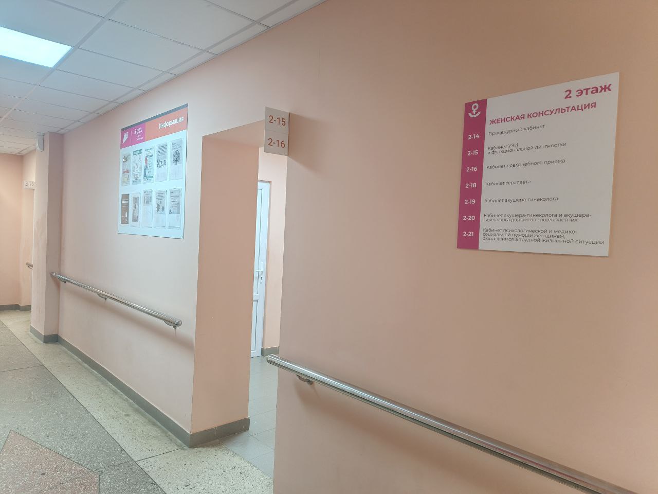 В новой женской консультации организована работа следующих кабинетов: врачей-акушеров-гинекологов, доврачебного приёма, процедурная, кабинет ультразвуковой диагностики, функциональной диагностики, психологической и медико-социальной помощи женщинам, оказавшимся в трудной жизненной ситуации, кабинет врача акушер-гинеколога для несовершеннолетних.